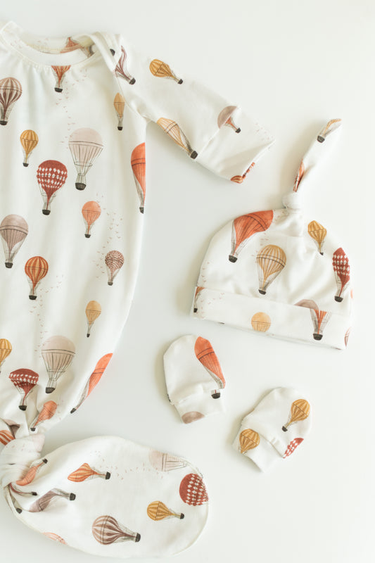 Hot Air Balloon Baby Knotted Gown and Hat Set