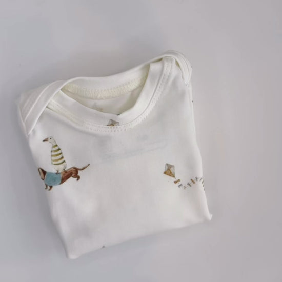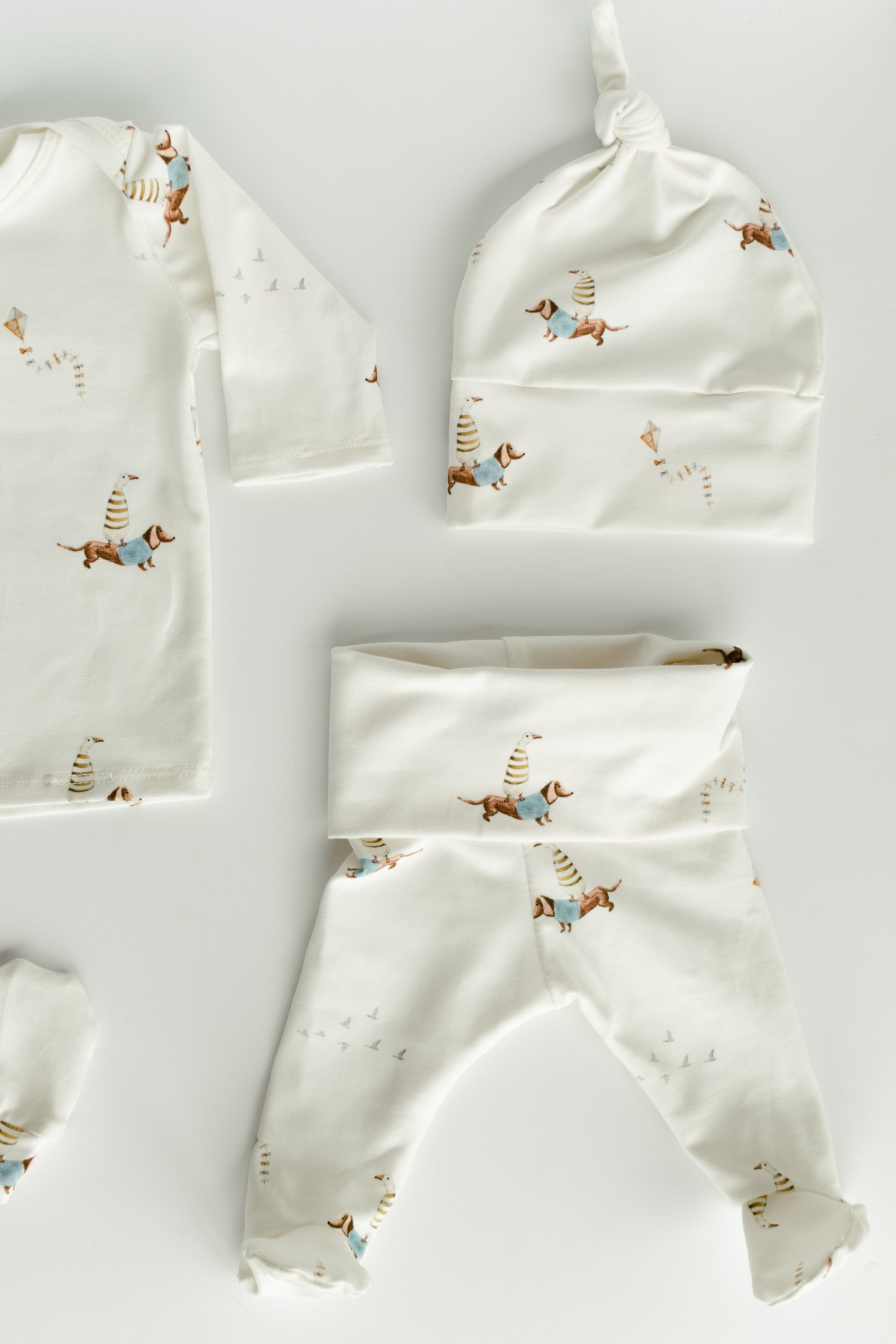 Duck Dachshund Dog Kite Baby Outfit Set Pants Shirt Hat and Mittens